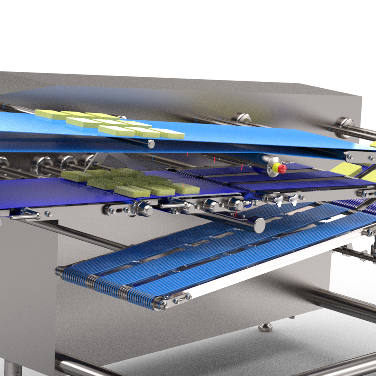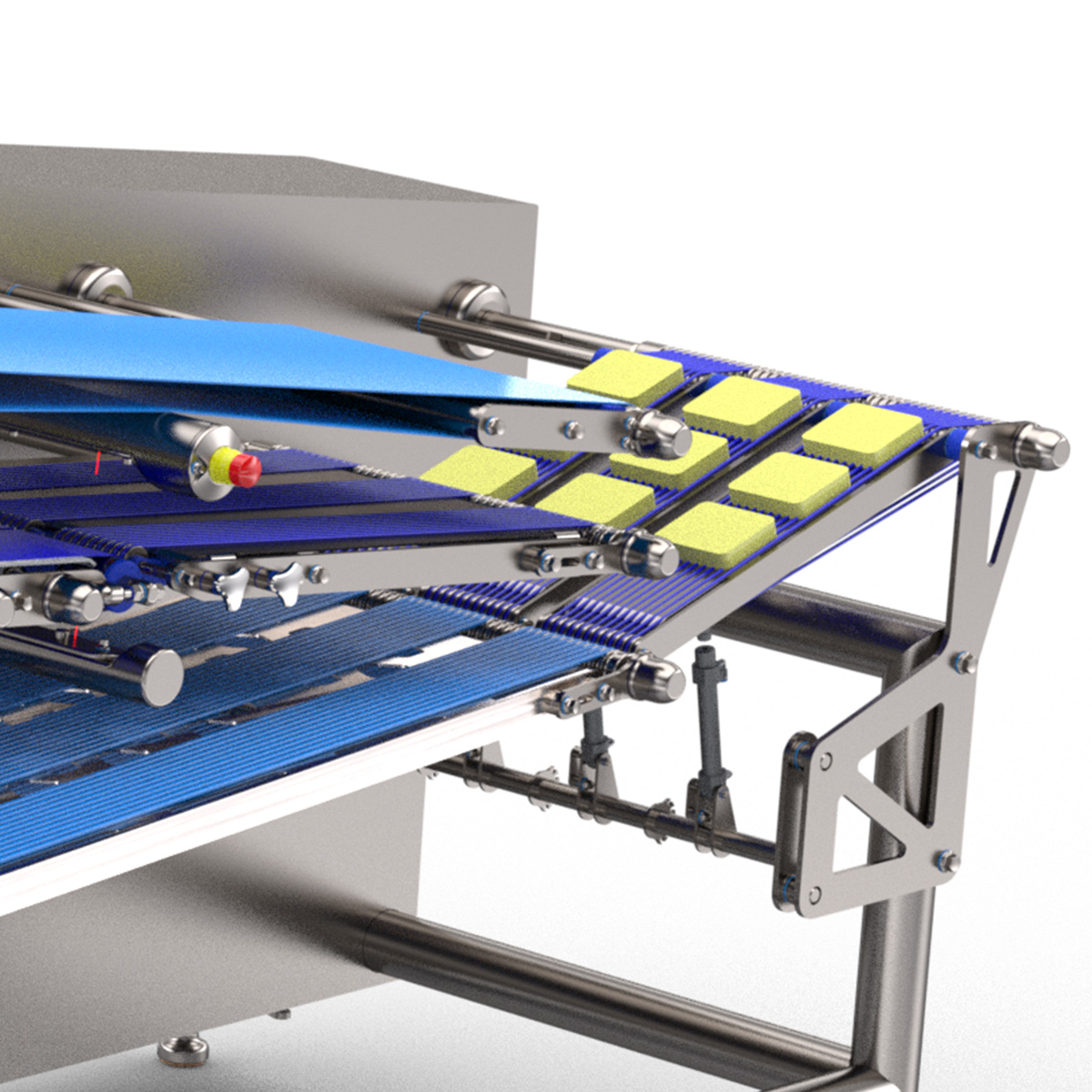 -Comunicação entre máquina fatiadora e a termoformadora garante uma ótima velocidade de transporte das porções.